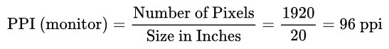 모니터의 가로가 1920px이고, 길이는 20inch인 경우, 해상도는 96 PPI가 된다.