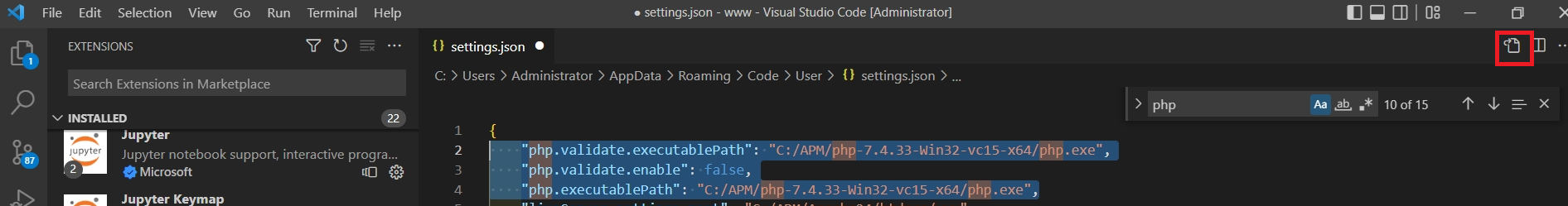 "php.validate.executablePath": "C:/APM/php-7.4.33-Win32-vc15-x64/php.exe",
