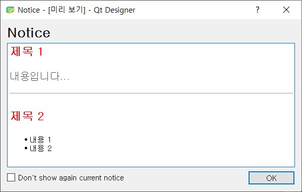QTextBrowser나 QTextEdit에 들어가는 내용을 html로 작성하고, 해당 요소마다 style을 설정해준다.